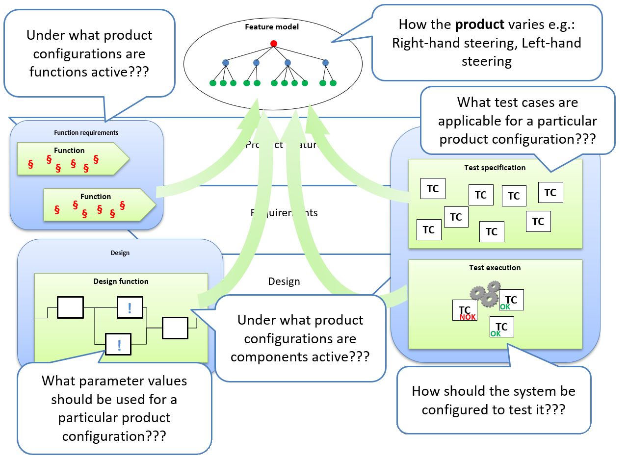 Connecting test cases to the feature model makes it possible to filter out test cases applicable for a specific product configuration when creating test executions.