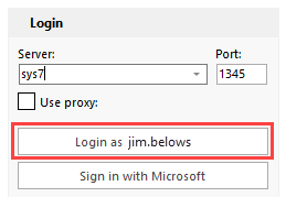 Each time you log in to swExplorer, the server, port and username are remembered for future use.
