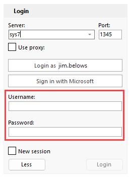 Password: Enter your password here. If you used the Login as ... option the last time you logged in, the Login box will be hidden. Click the More/Less button to see the box.