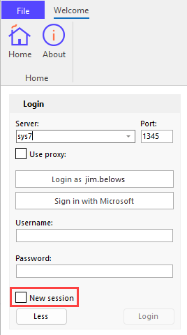 Logging in to a New Session