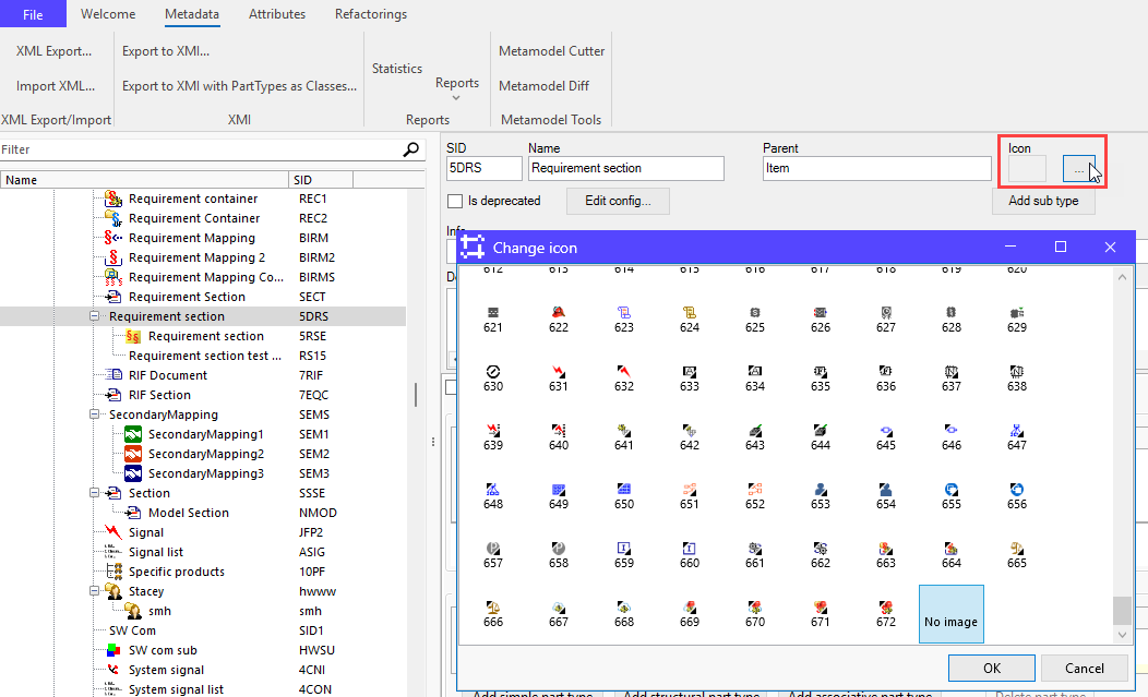 In SystemWeaver, you can choose to display an icon for items, parts and issues. Icons help users to more easily distinguish between different types. They are assigned to item types and part types using the swArchitect client.