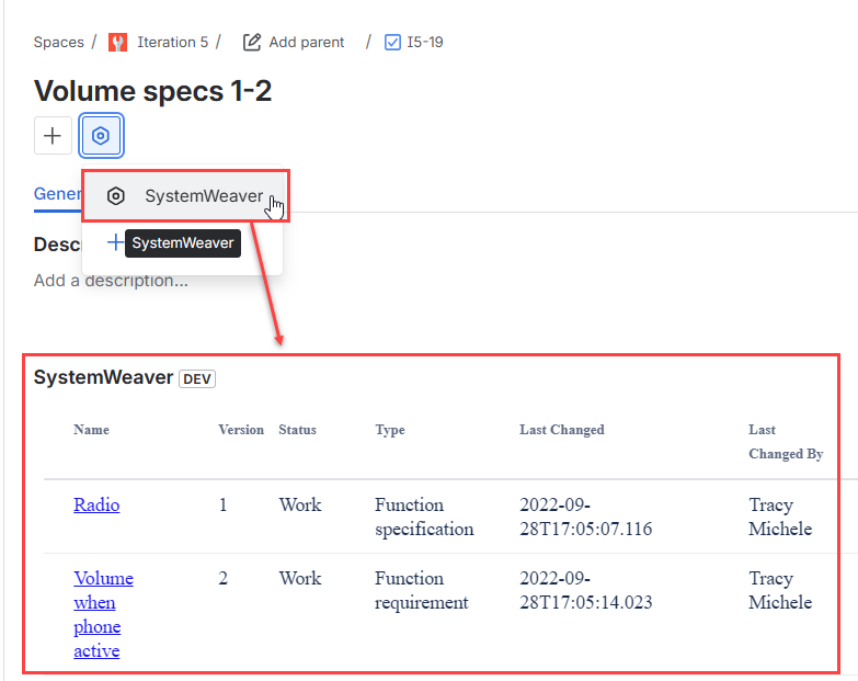 | Don't see a SystemWeaver linked items listed? Contact your Jira administrator to confirm configuration. |