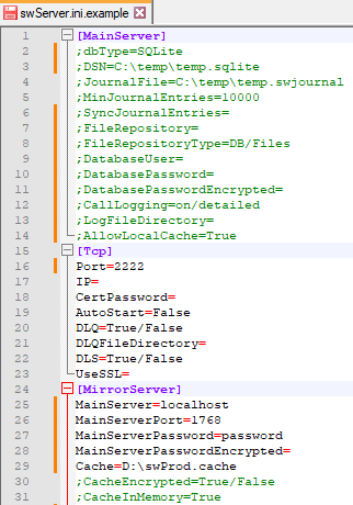 - Open the swServer.ini in the mirror server installation in a text editor.