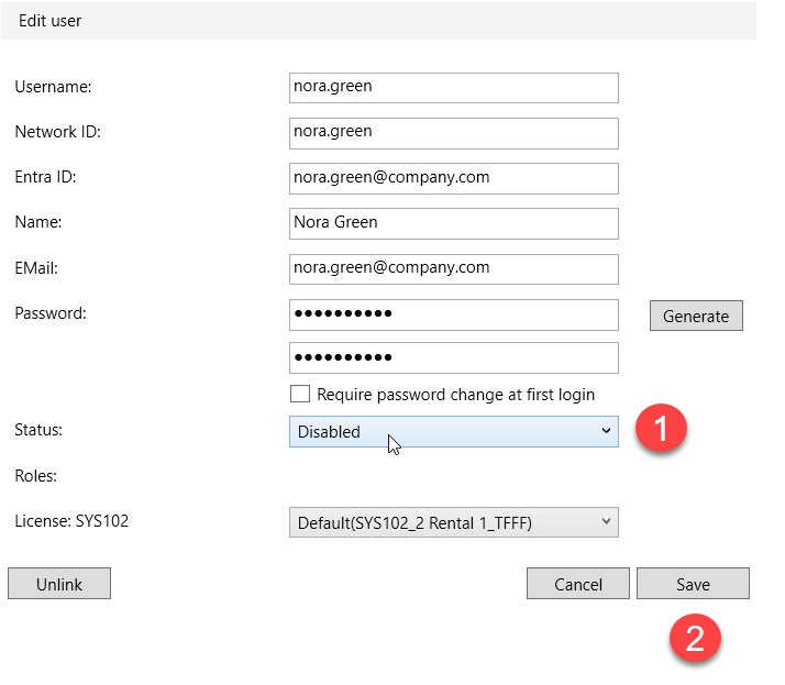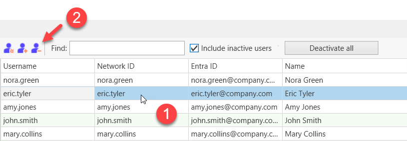 To deactivate one account (and not delete it), select the user entry and click the Edit User button